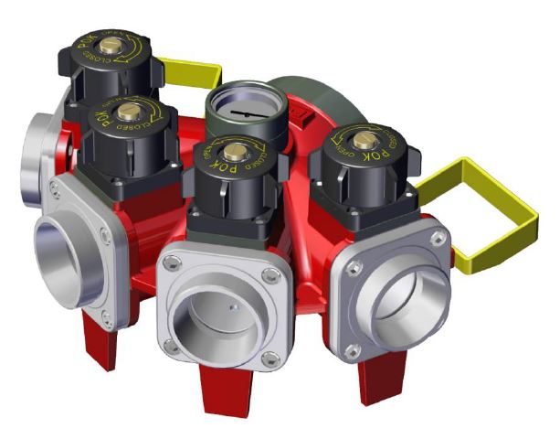 Quadripok verdeelstuk 1x nok 133 (draaibaar) in, 4x nok 81 uit