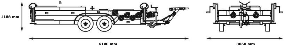 In gebruik wordt de trailer gestabilliseerd door de 4 steunpoten met een til capaciteit van 10 ton en is de trailer voorzien van een 1300 kg ballast tank.