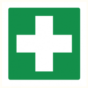 Kunststof pictogrammenbordje met opdruk van internationale EHBO symbool.