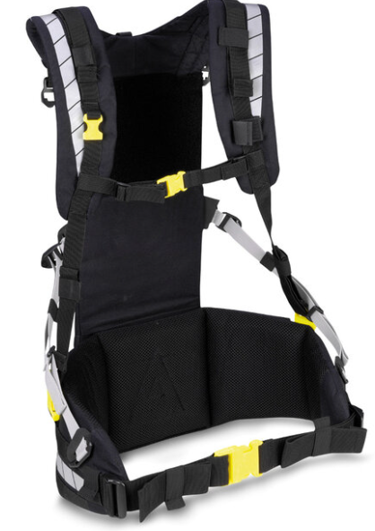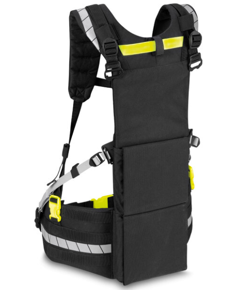 Het ergonomisch en individueel instelbare basissysteem bestaat uit gevoerde schouderbanden, een rugverbinding en een heupgordel.