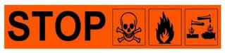 Afzetlint oranje met zwarte opdruk.
