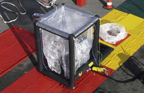 OGS aanduidingszeil tijdens decontaminatie; Rood - Besmet Geel - Decontaminatie Groen - Ontsmet